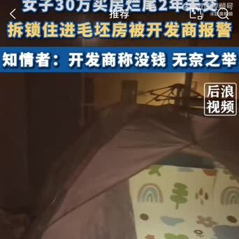 【#女子买房烂尾2年帐篷入住遭驱赶#,知情者:开发商报警称破坏公物】近日,辽宁沈阳。女子花30万买房烂尾2年未交付,拆锁住进毛坯房遭驱赶。知情者王先生称,原本2022年8月交房,但开发商称没钱无法通过水电验收,一直烂尾拖着,该女业主是外地人贷款买房,等待交付期间需一直租房住,经济压力太大,无奈之下才拆门锁搭帐篷住进毛坯房,开发商报警称其破坏公物,警察到场一直试图劝离。